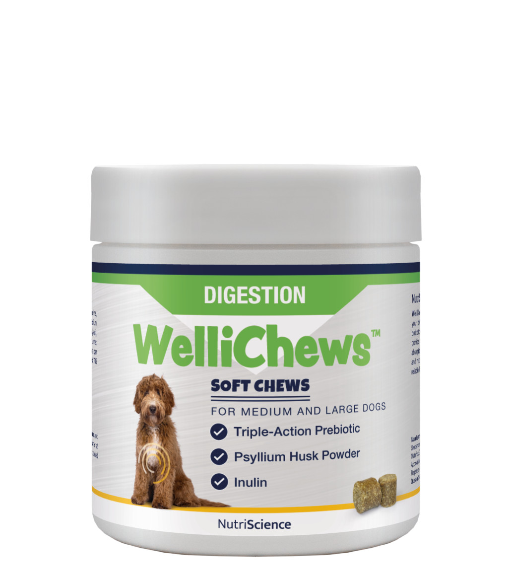 Rizskorpa, tápióka, burgonya, finomított növényi olaj (repce, napraforgó), glicerin, magnézium-sztearát, inulin (Cichorium intybus), útifűmaghéj (Psyllium husk), sütőtökmag, aktívszén, NaCl, glükóz-oligoszacharid. Tápértékkel rendelkező adalékanyagok/kg: C-vitamin 34.900 mg Bélflóra stabilizátor: Enterococcus faecium 9,8 x 10⁹ CFU.