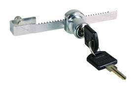 A racsnis kar az üveg egyik részéhez csavarozható (fúrás nem szükséges), a zártest pedig a kar mentén csúszik, hogy az elülső tolóajtó széléhez érjen. A kulcs elfordításával zárja vagy nyitja a zárat.